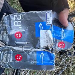 Gemeinsam tauschen wir den kaputten Schlauch aus, und können sogar im Mantel den Verursacher, einen kleinen Glassplitter, herausziehen. Bei nicht Entdecken, hätte er auch den neuen Schlauch durchlöchert.