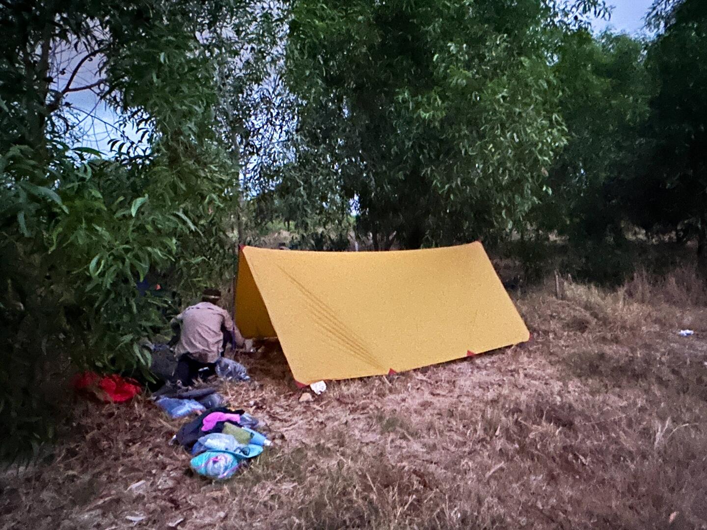 Hier ist unser Schlafplatz. Wir kochen, bauen das Zelt auf und schlafen ziemlich bald ein.