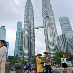 Unsere Morgenroutine beginnt mit Yoga und endet mit Frühstück. Danach machten wir uns mit unseren Rädern wieder auf in die Stadt zu den Petronas Towers. Fahrzeit ca. 1 Std.