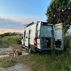 Dann beginnen wir mit unserem Ducato Runden zu fahren, denn Alex will ihn wirklich komplett leer machen. Und es klappt, nach der x. Runde springt Kohbi nicht mehr an - er ist komplett leer. Alex hat in weiser Vorraussicht unseren roten 20l Tank schon mit Pertamina Dex befüllt. Diesen leert er nun in den Tank von Kohbi. Dann nach mehreren Startversuchen springt er an. Puh, nun nur noch voll tanken an der Tankstelle und dann einen Stellplatz am PKW-Parkplatz suchen und nur mehr schlafen.Read more