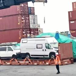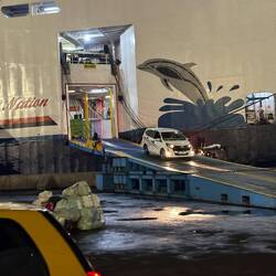 Alex hat auch noch Kontakt zu einem RORO - Agenten, hier wird das Auto direkt aufs Schiff gefahren und dort verzurrt, ohne Container. Das ist die billigere Variante, bedeutet aber auch, dass wir unseren Autoschlüssel abgeben müssen, und dass, wie schon so oft vorgekommen, das Fahrzeug aufgesperrt wurde während des Transportes und einiges entwendet wurde.