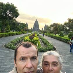 Unser nächster Stop ist Borobudur, jedoch ist der Tempel wegen Wartungsarbeiten immer am Montag geschlossen und Online-Tickets sind für heute auch schon ausgebucht. So fahren wir weiter nach Prambanan, ca. 34 km weiter.Hier machen wir erst mal Linner auf dem großen Parkplatz mit Bäumen, und am Nachmittag wandern wir durch den schönen Park mit den 4 verschiedenen Tempelanlagen. Jedoch zu unserem Ärgernis ist auch das Innere dieses Tempels wegen Wartung geschlossen. So können wir ihn nur umrunden, und die Sonne knallt unbarmherzig herunter. Zurückgekehrt zu Kohbi legen wir uns geschafft und übernachtig ins Bett und schlafen bald ein. Mich weckt noch ein heftiger Regenguß in der Nacht, Ich schließe die Türen,packe die Moskitonetze weg und öffne die Kipp-Fenster, so regnet es nicht herein.Read more