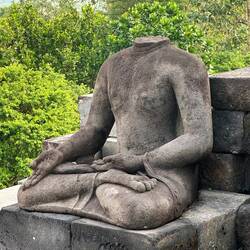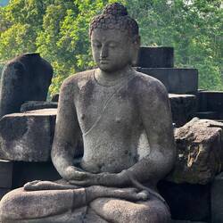 Nach ca, 150 Jahren wurde der Borobudur von einem Vulkanausbuch teilweise zerstört und vom Dschungel überwuchert. So geriet er fast mehr als 1000 Jahre in Vergessenheit. 1814 wurde er durch Thomas Stamford Raffels wiederentdeckt und seit dieser Zeit durchlief er verschiedenste Zeiträume der Renovierung.