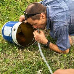 Sie bringen 20l Eisenkübel, in denen wir den Diesel einfüllen können. Alex saugt mit einem Schlauch den Diesel aus dem Tank, der in den Kübel in einem Graben rinnt. Dies geht mehr oder weniger gut. Alex bekommt immer mal wieder einen Mund voller Diesel zu schmecken.