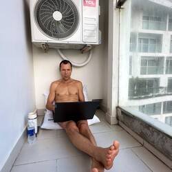 Alex entspannt in der Badewanne mit herrlichem Ausblick aufs Meer vom 21. Stock aus. Ein sehr nettes, kompaktes Appartment.