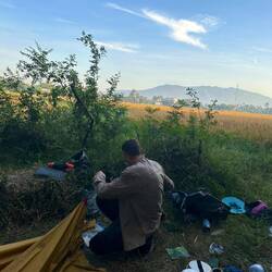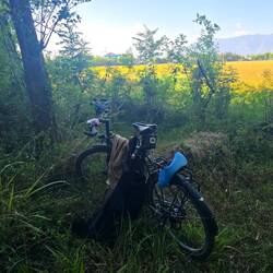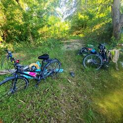 Nach ca. 24 km ging die Schlafplatzsuche wieder los.Wir bogen von der Hauptstraße in einen Feldweg, und schon nach kurzer Zeit wurden wir in einem Wäldchen fündig.
