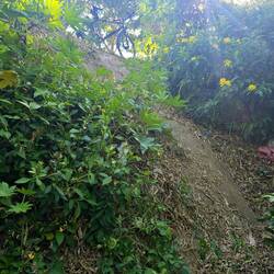 Heute ist die Strecke sehr abwechslungsreich. Kleine Hügel mit moderaten Downhills wechseln sich ab. Frühstück gibt es im Schatten eines großen Baumes neben einer alten Grabstätte. Während wir dort sitzen, kommt sogar jemand, säubert die Stufen, zündet Räucherstäbchen an und leert in 2 leere kleine Schalen Wasser ein und stellt das schöne Wassergefäß daneben ab.