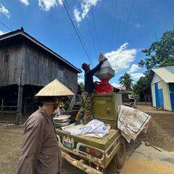 Ab ca. 11h wird es richtig heiß, sehr staubig, und auch die vielen Abgase der Lkws, Autos und der Motorroller bekommen wir zu spüren.