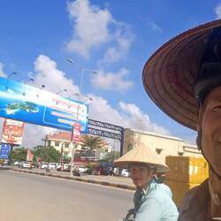Um ca. 12h erreichen wir die Stadt Quy Nhon, klappern noch 3 Radlgeschäfte ab, da Alex noch neue Radhandschuhe braucht, die kein Loch am Handrücken aufweisen, wo er einen Sonnenbrand bekommen kann. Wir finden die richtigen Handschuhe für meinen Schatz.