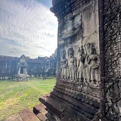 Riesig, imposant, beeindruckend, diese symetrische Architektur der Khmer-Kultur um 1200. Wunderschöne Felsgravuren in den Sandsteinwänden,welche bis heute erhalten sind und fast nichts von ihrer Schönheit verloren haben.