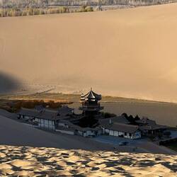 Es ist der Mingsha Mountain Cresent Spring Scenic Spot: