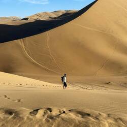 Dann war sie hinter den Dünen verschwunden, und es wurde merklich kühler. Ich machte mich auf den Weg zurück und traf mich mit Alex bei den Kamelen.