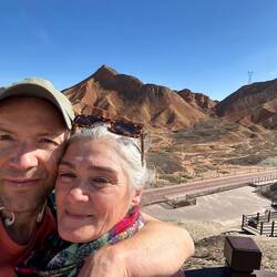 Wir frühstückten noch in aller Ruhe. Alex verspürte auch noch den Wunsch einen Tag hier zu bleiben. Ich nicht! Wir machten uns dann doch auf den Weg, trafen noch Alexej und unsere Spanier an einer Stellfläche auf einer Anhöhe, fuhren aber dann weiter zum dem Stellplatz von IOverlander. Hier kochten wir Mittagessen, setzen uns hinaus in die Wärme und konnten die Lkws vorbeidonnern hören. Da wir etwas höher liegen, ist es aber nicht so schlimm, und auch ganz wenig Staub.