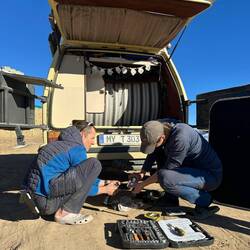 Dann kochte ich unser Porrigde und half Alex beim Demontieren unserer Truma - Heizung. Inzwischen war unser Campingspot in die Morgensonne getaucht, und es war nicht mehr so kalt.