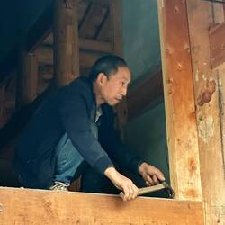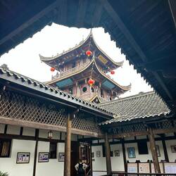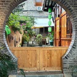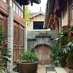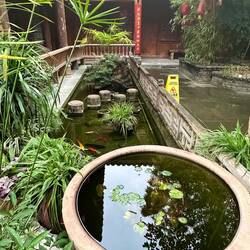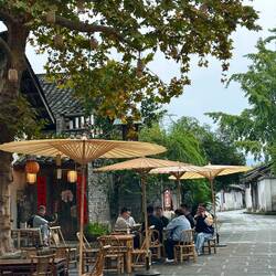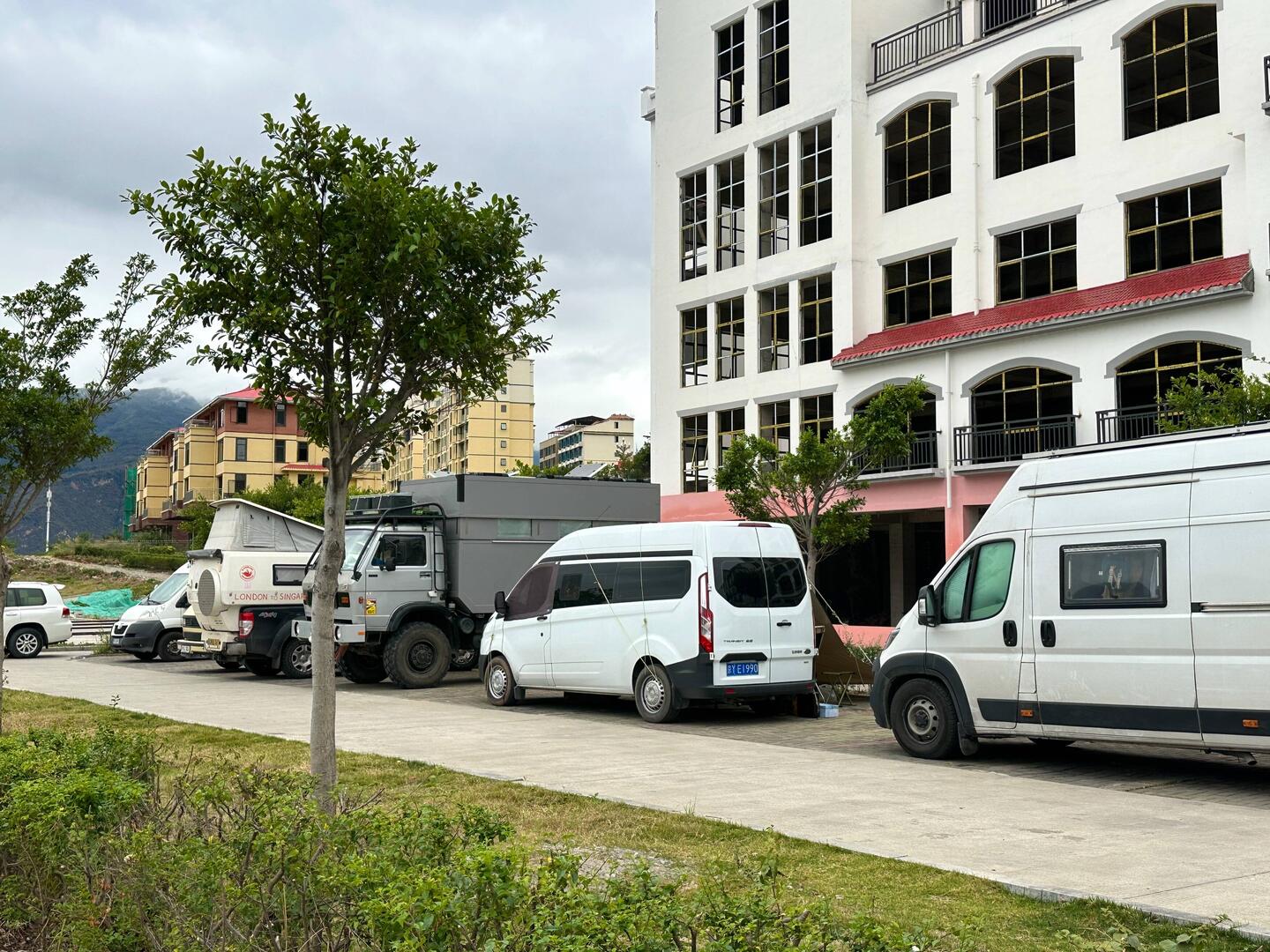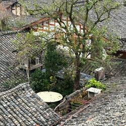 Wir campieren heute im Innenhof von Joé`s Hotel mitten in der Stadt Zhenhuang.