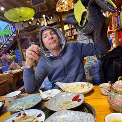 Danach kehrten wir alle mit dem Taxi zu unserem Stellplatz zurück. Da ich noch nichts zu Abend gegessen hatte, und unser Guide Joe auch unter uns war, lud ich ihn zum Abendessen ein. Omlette mit Pilzen, Kartoffeln, Paprika und Ei.