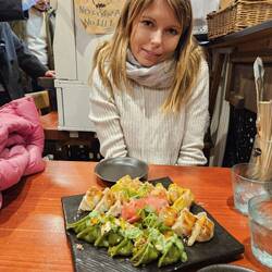 13h cette fois on se fait pas avoir on va manger tôt pour avoir plus de choix... Mais même à cette heure là il y a pas énormément de choix pour des sushis 🍣, Jerem ne dit ne pas en manger assez alors on avait décidé d'en trouver ce midi mais ils sont plus dans les soupes ici. On finit par en trouver un, désert, un peu sombre on est seul avec un mec qui semble faire tout. Ambiance un peu froide (et froid a l'intérieur pas de chauffage 😕), on commande un set meal , Jerem avec un sashimi moi avec des tempuras (beignets style japonais) de crevettes et de légumes 🍤. C'est pas mal et plateau joliment présenté. Oups on a oublié la photo.