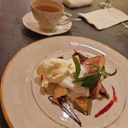 Ensuite c'est retour dans le froid, on est un peu dépité du temps, heureusement déjà il pleut pas. On s'arrête dans un petit café prendre un chai latte (on a découvert ça à Tokyo on kiffe en prendre un de temps en temps maintenant) et encore du sucre (confort food) une tarte au poire et un Roll à la fleur de cerisier, super bon.