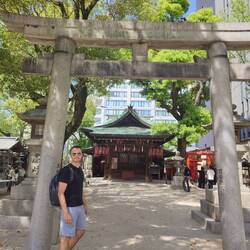 L'après-midi on se dirige vers la tour d'Abeno Hakura,🏢 le plus haut building du Japon (300m de haut) qui est très récent c'est le 10ème anniversaire cette année. Au passage on craque pour une tarte aux fraises 🍓 et un Taiyaki ( spécialité sucrée en forme de poisson fourré de crème pâtissière qu'ont avait déjà pris a Tokyo) 🤤🤤. On monte 'seulement' au 16ème étage au café/jardin dont l'accès est gratuit, l'obervatoire est au 60ème!! car ce soir on va visiter l'observatoire d'une autre tour. La vue est déjà ouf, et c'est impressionnant ce nombre de buildings, presque à perte de vue avec au fond une chaîne de basse montagnes d'un côté et la mer de l'autre (mais on a pas vraiment accès à ce côté).