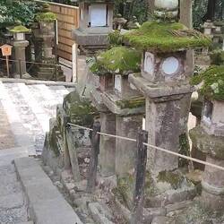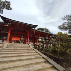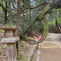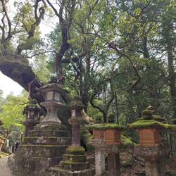 On continue notre boucle en passant par 2 autres temples, c'est vraiment sympa il y a des espèces de poteaux lanternes en pierres qui bordent les allées aux temples on avait pas encore vu ça. La zone est vraiment belle, je vous laisse découvrir les photos. On s'arrête en chemin manger dans un petit resto, un plat de riz au poulet et un autre de riz a l'omelette avec leur soupe miso/soja et des petits pickles 2000 yens le tout (12 balles). Ensuite on passe à travers des pelouses de biches puis on arrive dans une zone de forêt trop belles avec des grands arbres dont certains ont des racines magnifiques où on découvre encore un temple (oui oui il y en as vraiment partout !).