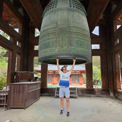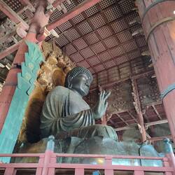 Ensuite on part visiter le Todai-ji temple, le bâtiment principal est impressionnant, massif, et il est précéder d'un autre bâtiment temple lui aussi énorme. A l'intérieur on découvre la fameuse statue bouddha en bronze il mesure 15m de haut et fait 500 tonnes. Vraiment impressionnant, de chaque côté il y a d'autres bouddhas immenseaussi et recouvert de feuilles d'or et des statues de samouraïs. Le hall du temple est immense, il à été conserver brute en bois c'est chouette, ça fait de l'effet !