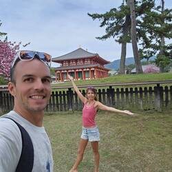 Aujourd'hui c'est visite de Nara, la ville des biches voisine d'Osaka, on part tranquille vers 9h30 et après 20min de marche pour arriver à la station de train on se rend compte que l'on à pas remis mon portefeuille dans le sac et il est dans le blouson de Jerem qu'on à laisser à l'hôtel. Du coup on se fait un aller retour 1h après et 5km dans les pattes (déjà !) Nous prenons finalement le train 🚝. Heureusement seulement 40min plus tard nous voilà à Nara.