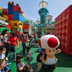 Vers midi c'est direction Nintendo World celui que Jerem est trop pressé de faire. Les décors sont ouf, on s'y croirait, super coloré et tout, je vous laisse découvrir les photos et vidéos. Pour l'attraction principale on est dans un kart de Mario et on a des lunettes 👓 3D, c'est comme si on était dans le jeu on est sur la piste et on doit tirer sur les méchants. Juste le Kart est guider sur des rails on a pas full control. C'est vraiment bien fait on rigole bien 😀. Ensuite c'est pause lunch au Resto Nintendo burger 🍔frittes🍟 pour mon p'tit ricain lol avant d'aller voir un show en plein air de WaterWorld. C'est tiré d'un film des années 90. C'est vraiment bien fait dans un décors bien réalisé aussi je vous laisse découvrir un bout en vidéo et photo.