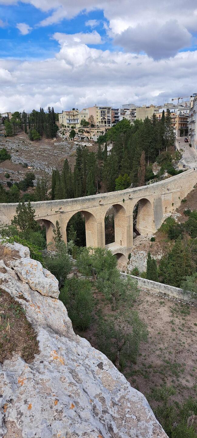 Vormittags nach Laterza in der Schlucht wandern gegangen, dann anschließend nach Gravina in Pulia die James Bond Brücke besichtigen, ziemlich enttäuscht dort. Abends in Matera Pizza essen gewesen und
