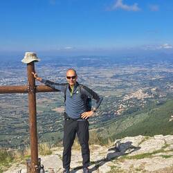 Wanderung vom Campingplatz auf dem Monte Subasio, traumhafte Aussichten. Abends noch mal Sonnenuntergang in Assisi genossen und jetzt lecker essen.