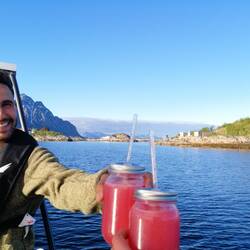 We woke up to a beautiful sunny day, so we had our tasty breakfast outside 😍 Hennigsvaer has contributed a lot to our Solenya trip, besides great memories, some great materials to repair a fewLæs mere