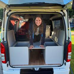 TravelerAlle Achtung, dass Ihr es auf diesem engen Raum so lange aushaltet, vielleicht bin ich dazu auch mittlerweile zu alt. Wir waren mal mit einem Britz Bushcamper vier Wochen in Australien unterwegs, das fand ich super. Allerdings hatten wir auch gutes Wetter (und ich war einiges jünger). Witzig ist wirklich, dass das „Büro“ ausschaut, wie die Mietobjekte.