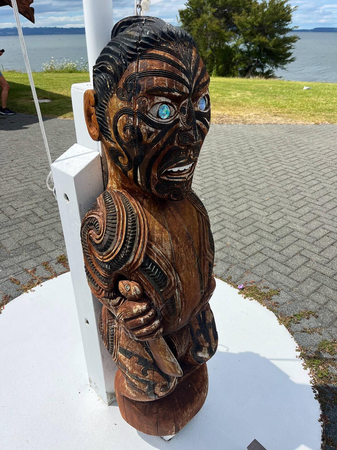 Danach ging es weiter nach Rotorua zur Te Papaiouru Marae, einem Māori-Versammlungshaus (Marae ist das Māori-Wort für Versammlungshaus), umgeben von lauter dampfenden Quellen. Anschließend schauten wir bei der St. Faith’s Church vorbei, die von weiß gemauerten Gräbern umgeben ist. Das alles liegt in Ohinemutu, der Māori-Altstadt von Rotorua.