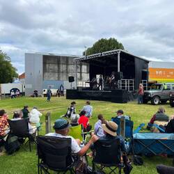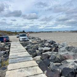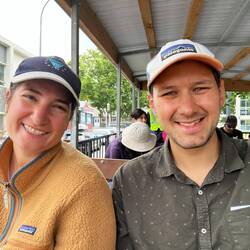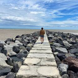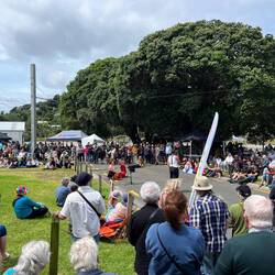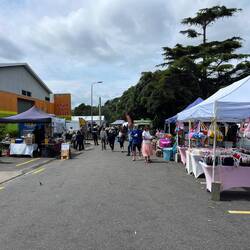 Danach ging es weiter über das Gelände. Dort spielte eine Band, und es gab viele Stände mit Essen und Marktware. Anschließend gingen wir noch zu einem Anglersteg, wo es allerdings extrem windig war, weshalb wir gleich weiter Richtung New Plymouth fuhren.Læs mere