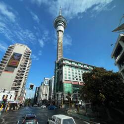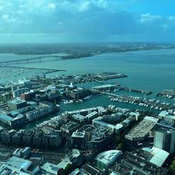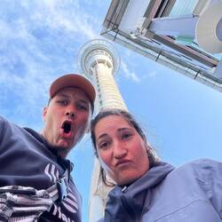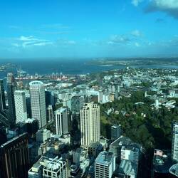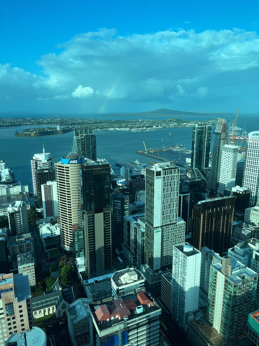 Dort ging es gleich hinauf auf den Sky Tower, von dem aus wir eine atemberaubende Aussicht über Auckland hatten. Immer wieder setzte starker Regen ein – so heftig, dass wir uns mehrmals unterstellen mussten. Der Regen kannte gefühlt nur zwei Modi: Vollgas oder gar nichts.
