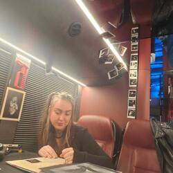 This was a concession day, so Nina and myself counted everything for the whole day outside of the trailer while someone from the venue set up and sold the merch that night. That was so weird,Read more