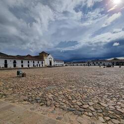 Villa da Leyva ist ein putzigen Dorf im Kolonialstil, so richtig aus einem Guss. Wir gönnten uns erstmal ein Getränk am riesigen Hauptplatz und gingen dann einchecken. Unser Hotel ist hübsch, einfach eingerichtet, aber blitzesauber, und hat einen schönen Blick. Da durch die Regenzeit Nebensaison ist zahlen wir schlanke 20 Euro pro Nacht.