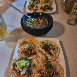 Am Abend ging es zum Restaurant mit den besten Bewertungen der Stadt 5,0 Sterne. Häufig sind solche Bewertungen ja gefälscht, doch das kleine Takko-Restaurant überzeugte völlig. Die Salsa wurde frisch am Tisch gemörsert und die vier Tacos waren köstlich, mindestens so gut wie die, die ich in Mexiko hatte.đ Der Besitzer stellte sich und das komplette Küchenpersonal vor, erklärte uns die kompakte Karte und freute sich sehr über deutsche Gäste.