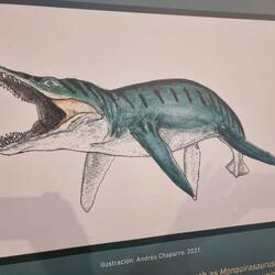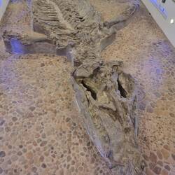 Dann fuhren wir mit dem Taxi ins Museum "El Fosil". Die Bewohner des Stadteils haben jahrzehntelang kämpfen müssen um ihren 12m langen Wasserdino behalten zu dürfen. Das Museum wurde um ihn herum gebaut. Das Fossil ist eines der ganz Wenigen die man genau am original Fundort besichtigen kann.