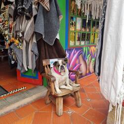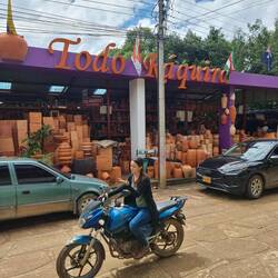 Raquira ist,aufgrund lokaler Tonvorkommen, vor allem für die Töpferei berühmt, und wurde dann ein Touristen-Zentrum. Es ist ein hübscher Ort, aber ein wenig künstlich bunt gestaltet. Rund um den Ort versucht man mit lustigen Fotospots wie riesigen Schweinen und auf dem Kopf stehenden Häusern ( keine Fotos) etwas vom Kuchen abzubekommen.