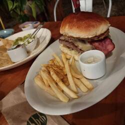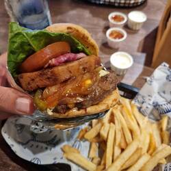 Wir wurden hungrig, und die Beiden hatten auch noch einen tollen Burger Tipp. Der Laden hatte Ihnen am Vorabend so gut gefallen, dass sie gleich wieder hin wollten. Man konnte seinen Burger mit einer Ankreuzliste selbst zusammenstellen. Da war so viel Auswahl, das überforderte mich ein wenig, aber Javier hatte solchen Spaß und einen wissenschaftlichen Zugang, da ließ ich ihn meinen Burger als Überraschung zusammenstellen. Superlecker!