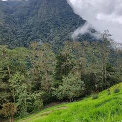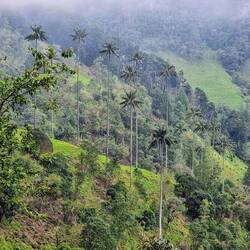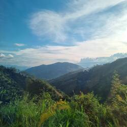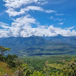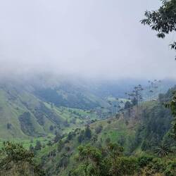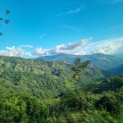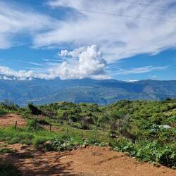 Die Strecke war unglaublich schön! Die zerklüfteten Anden hoch und runter, auf Bergkämmen mit spektakulären Aussichten links und rechts ins Tal, entlang von Bächen und Wasserfällen und durch verschiedene Klimazonen. Hier in der Region Santander ist die Vegetation deutlich tropischer , viele Palmen, Mangos und andere Tropenpflanzen säumten den Weg.