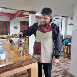 Dorthin kamen wir mit Raul. Er wurde uns gestern vom Fossilienmusem vorgestellt und ist ein lokaler Fahrer. Mit wenig spanisch und Hilfe des Handys einigte man sich auf einen Halbtagestrip, 9-15 Uhr. Fahrt nach Raquira, Besuch in einer kleinen Manufaktur, Besuch der Stadt, Zeit zum Rumlaufen, Restaurantempfehlung und Rücktransport.