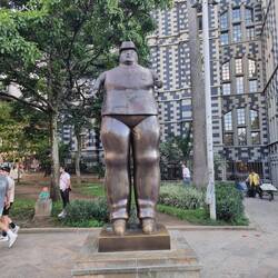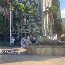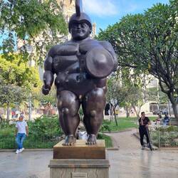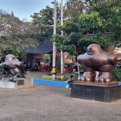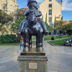 Der Nationalheld auf der Stele hat sich mit den eindrigenden Spaniern in einem Waffendepot in die Luft gesprengt und so seine Männer gerettet die am flüchten waren . Böse Zungen behaupten er war betrunken und es war ein Versehen. Die Führerin glaubt beides! Er war heldenhaft, aber er musste sich Mut antrinkenđ