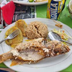 Angekommen am Strand gab es köstlichen Fisch, am Morgen direkt an selbem Strand gefangen! Wir durften wählen und bekamen die Unterschiede der einzelnen Fische erklärt viel Fleisch wenig Gräten usw.
