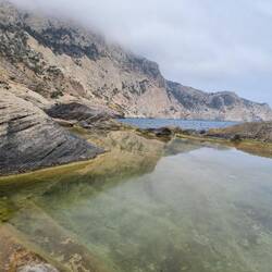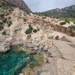Danach ging es direkt nach Atlantis. Der Abstieg war steil, und ich würde sagen: nicht ungefährlich. Es war fast schon Klettern. Und es waren bestimmt 200 bis 300 Höhenmeter. Aber unten – die Bilder sprechen für sich. Es war einfach wunderschön. Die Abkühlung im Meer war wohl verdient! Und auch der Rückweg durchs Inselinnere war ein Traum, kaum Autos und schöne Täler voller Terassen und schöner weißer Fincas.