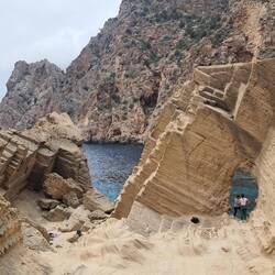 Kleine Geister werden natürlich bezweifeln, dass ich wirklich den Weg in die mystische Stadt gefunden habe. Und langweilige Menschen behaupten, es sei einfach nur der Steinbruch, aus dem die Steine für die Festung von Ibiza geschlagen wurden – direkt am Meer. Aber wer es gesehen hat, weiß: Das sind die Überreste des legendären Atlantis. Von den Wellen so stark, so fest an die Küste Ibizas geschleudert, dass die Bodenplatten, die Erdplatten, gekippt sind.
