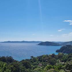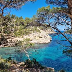 Der letzte Tag auf Ibiza wurde nochmal für eine Radtour genutzt – in den Norden, an eine abgelegene Küste mit einem kleinen Geheimweg und einer versteckten Bucht, Geheimtipp von Jochen. Es war wunderschön dort. Danach ging's zurück zu den Kellers: duschen, waschen, alles in der Sonne trocknen, packen – und dann war schon Zeit für die Abreise.