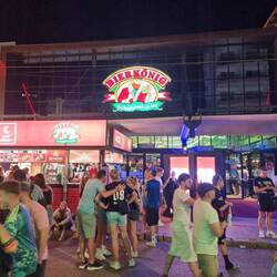 Nach dem Einchecken im Hotel ging es dann wirklich auf die Schinkenstraße, in den Bierkönig. Zwei Bier habe ich getrunken, mir das Ganze in Ruhe angeschaut. Wenn man nicht im Fußball- oder Handballtrikot unterwegs ist, fällt man dort fast schon auf. Auch wer geschlossene Schuhe trägt und keine Badeschlappen mit Socken – ungelogen, mindestens ein Drittel der Leute trägt genau das. Und das Faszinierende: Man kann die Ballermann-Lieder nach einer Strophe mitsingen. Einmal hören – und dann geht’s los. Ist wohl Grundvoraussetzung. Es war definitiv spektakulär – wird aber wohl trotzdem nicht meine Haupturlaubsart werden, dieser Ballermann-Partytourismus.