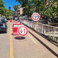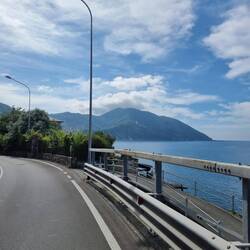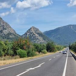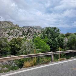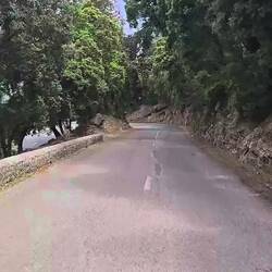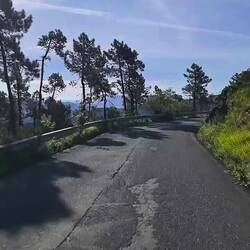 Nach 30 min kam ich auf einmal an eine Polizeischranke. Ich ahnte Übles! Der Polizist fragte wohin ich wolle, da die Straße "for bicicleta" gesperrt sei. Ich sagte zur Fähre und er überlegte......mannsah ihm an, dass er kurz rechnete wie viel Umweg ( bergauf) er mir zumuten konnte um meine Fähre nicht zu verpassen. Er kam zu dem Schluss, dass er mich fahren lassen musste. "Right side!!! Slow! Dont overtake !"