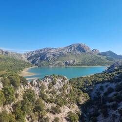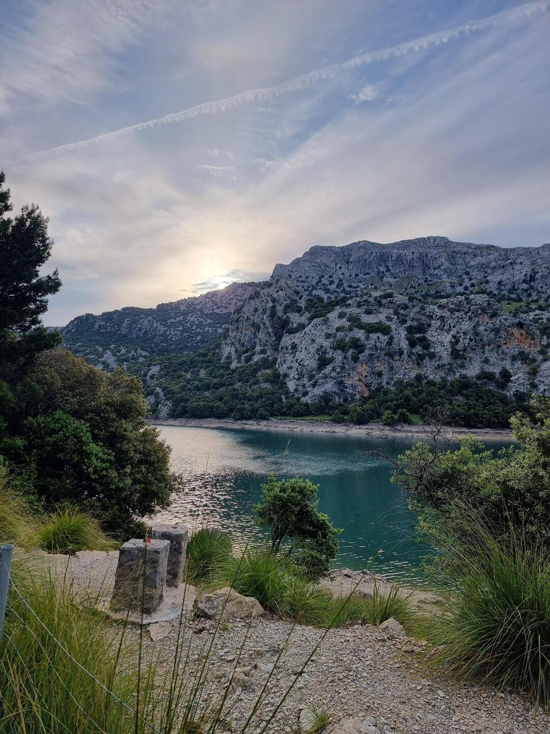Danach ging es in Serpentinen rund 900 Höhenmeter am Stück bergauf – durch eine beeindruckende Landschaft – bis zu den Stauseen, die Palma mit Trinkwasser versorgen. Leider war das Schwimmen darin verboten, obwohl ich fest damit gerechnet hatte. Ich war ziemlich verschwitzt. Zum Glück fand ich eine offene Leitung oder einen Kanal zwischen den beiden Seen, an dem ich mich ein wenig Waschen konnte – ohne gleich die städtische Wasserversorgung zu verseuchen.